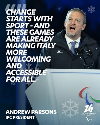 Lors de son discours, il a déclaré : « Les paralympiens sont prêts à redéfinir le possible, à repousser les limites des capacités humaines et à montrer ce que les êtres humains peuvent accomplir lorsqu’ils sont respectés et qu’on leur donne les moyens de réussir. »