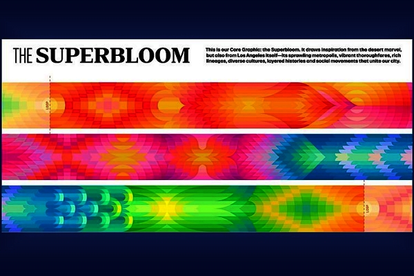 Les couleurs symbolisent l’un des phénomènes naturels les plus saisissants, la « Superfloraison » californienne : un phénomène connu localement sous le nom de Superbloom.